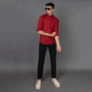 Red Full Sleeve Birdseye Cotton Shirt